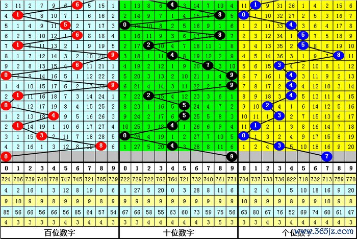 3、在以上0-9号码频次中,号码012路比为34:30:32,奇偶比为52:44,本期展望百位开出偶数号码,参考号码0。