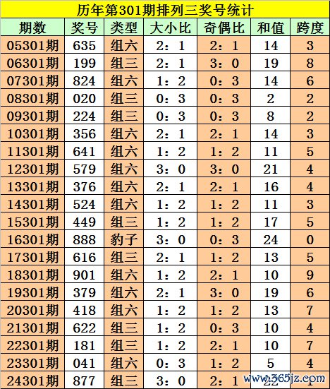 积年第301期奖号中:豹子开出1次,组三开出8次,组六开出11次。组三、组六基本终点,本期关爱组六。